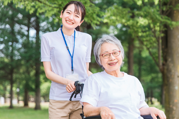 - 介護技術も必要ですが、利用者さまとの信頼関係を築くことを大切にしています。利用者さまのじっくり聞いて、笑顔そして丁寧な言葉遣いで対応。人生の先輩ばかりなので、尊敬の気持ちをもって接するように心掛けています。